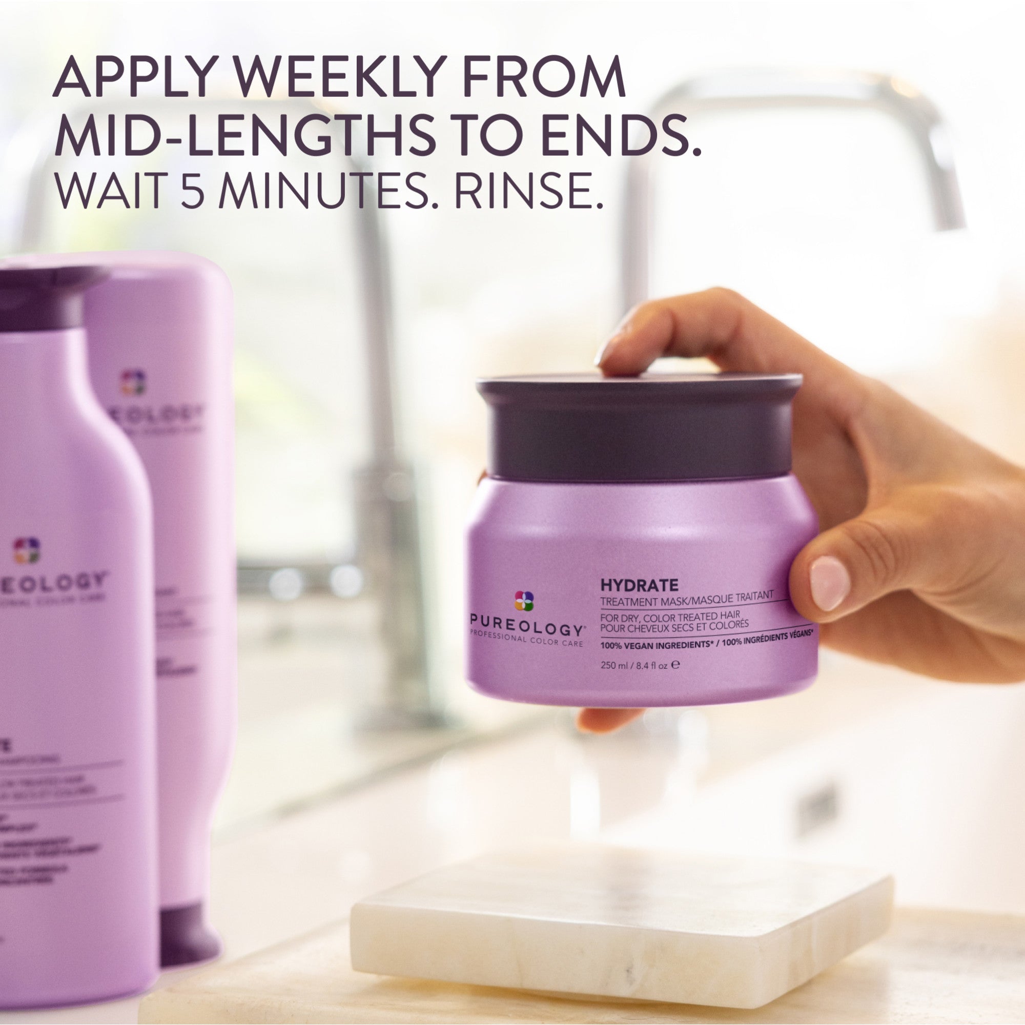 WAIT: Leave on for 5 minutes. For a more intensive repairing treatment, leave on for up to 10 minutes.